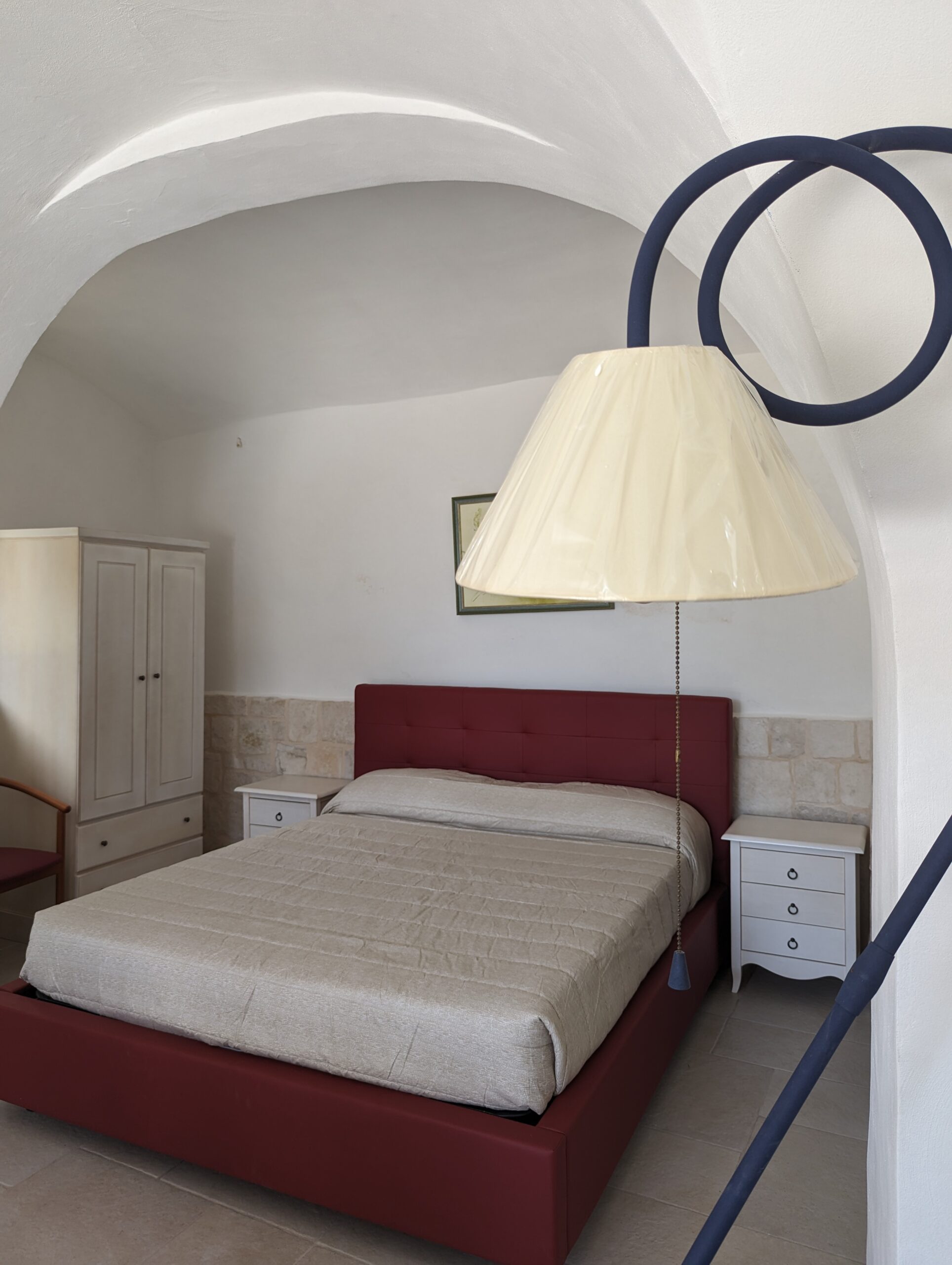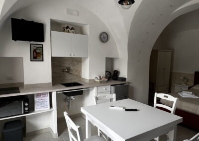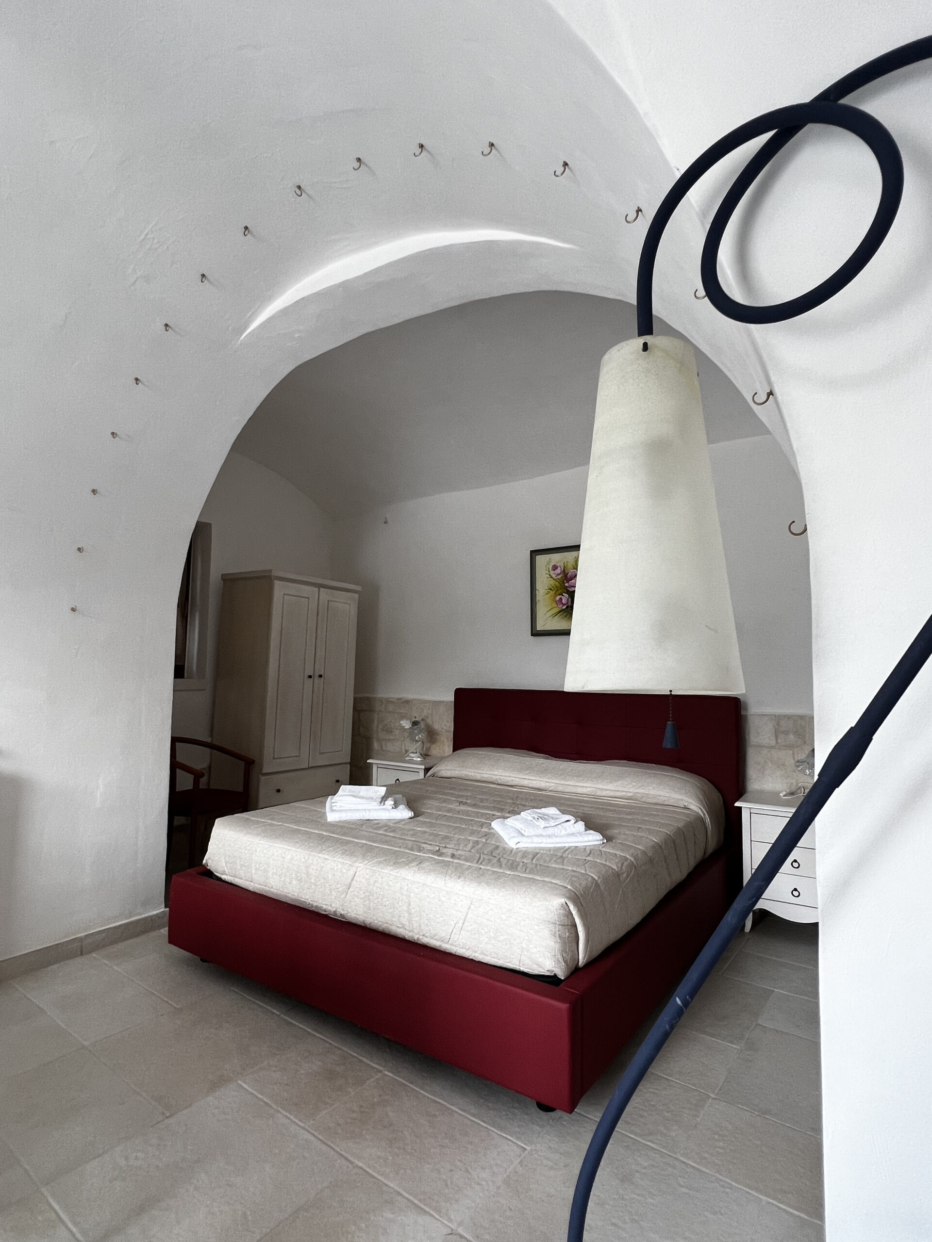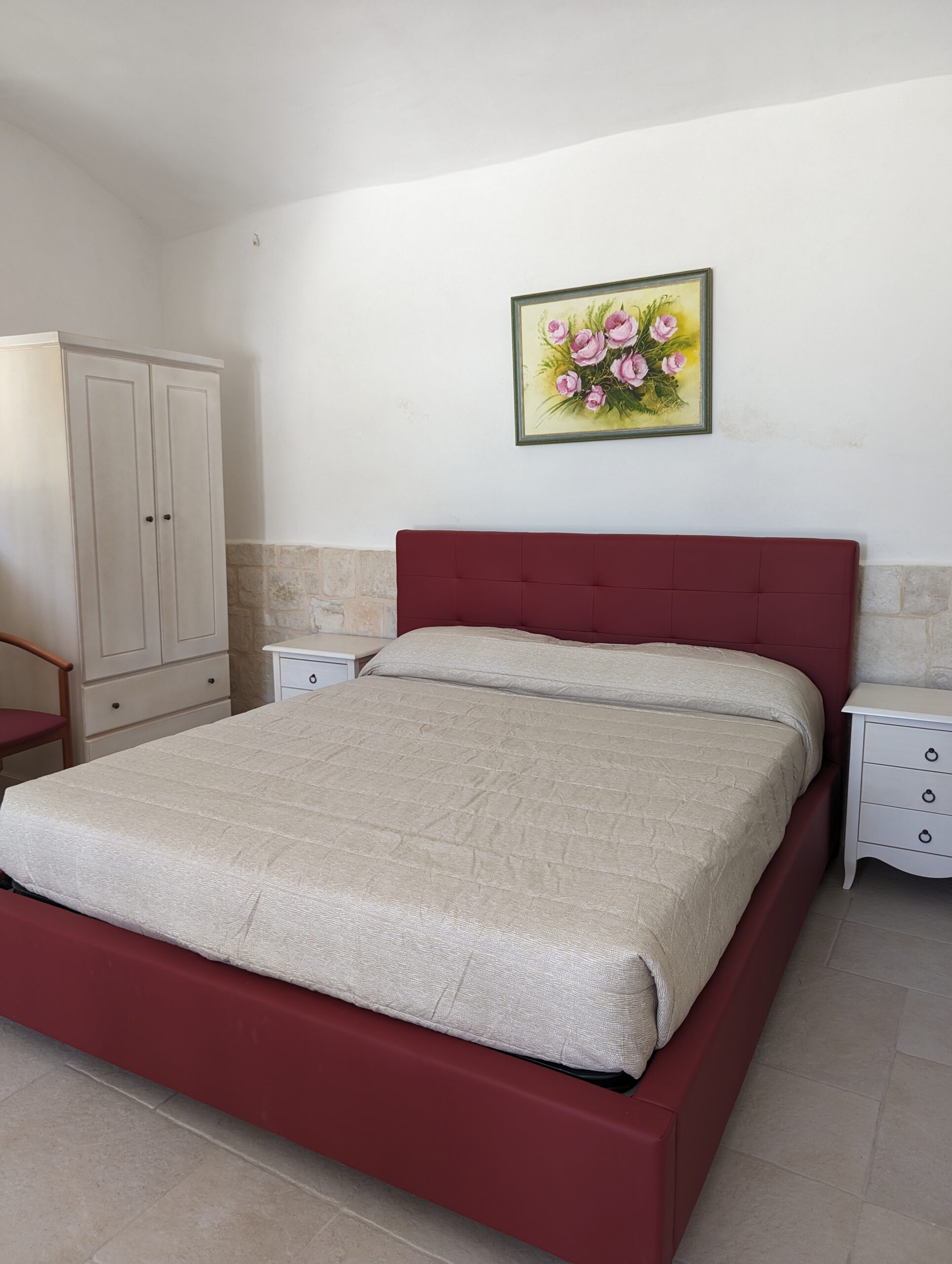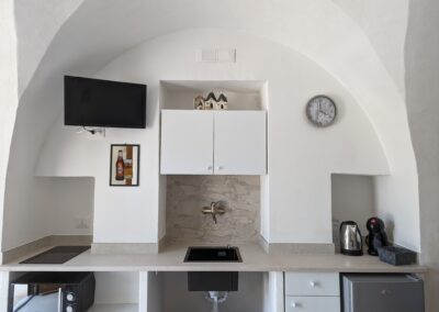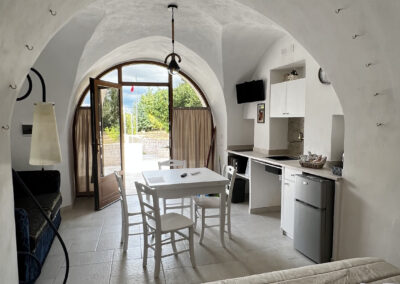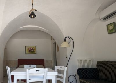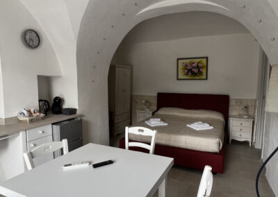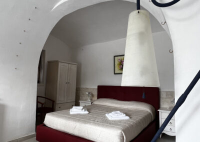 La camera è caratterizzata da un design rustico, grazie alla presenza di elementi tradizionali pugliesi. Gli spazi sono stati progettati con attenzione per garantire un’esperienza di soggiorno confortevole e piacevole.