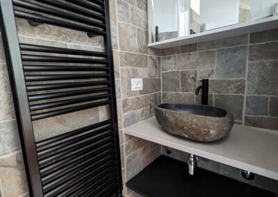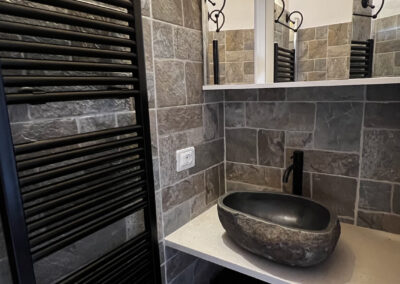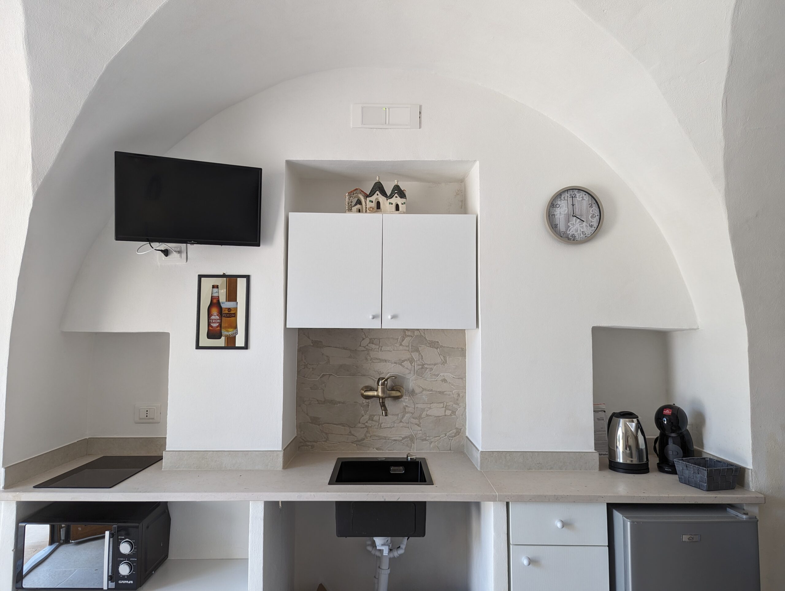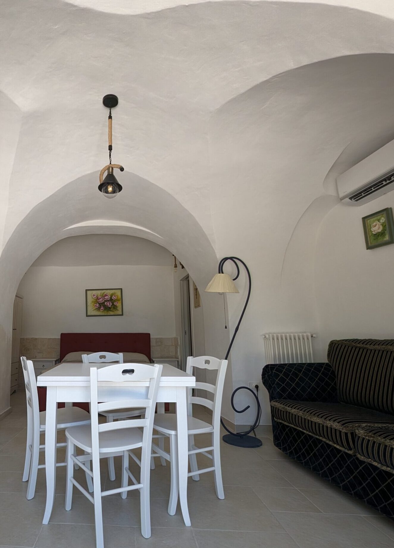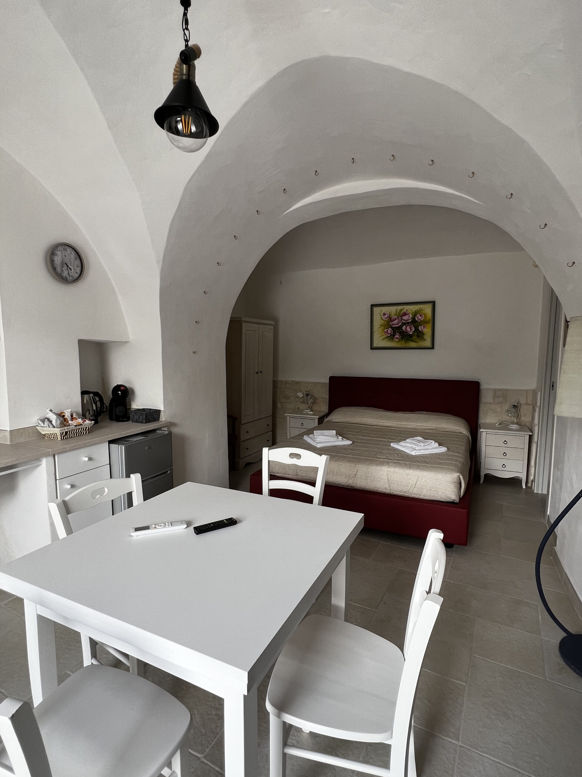 La camera è caratterizzata da un design rustico, grazie alla presenza di elementi tradizionali pugliesi. Gli spazi sono stati progettati con attenzione per garantire un’esperienza di soggiorno confortevole e piacevole.