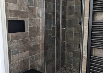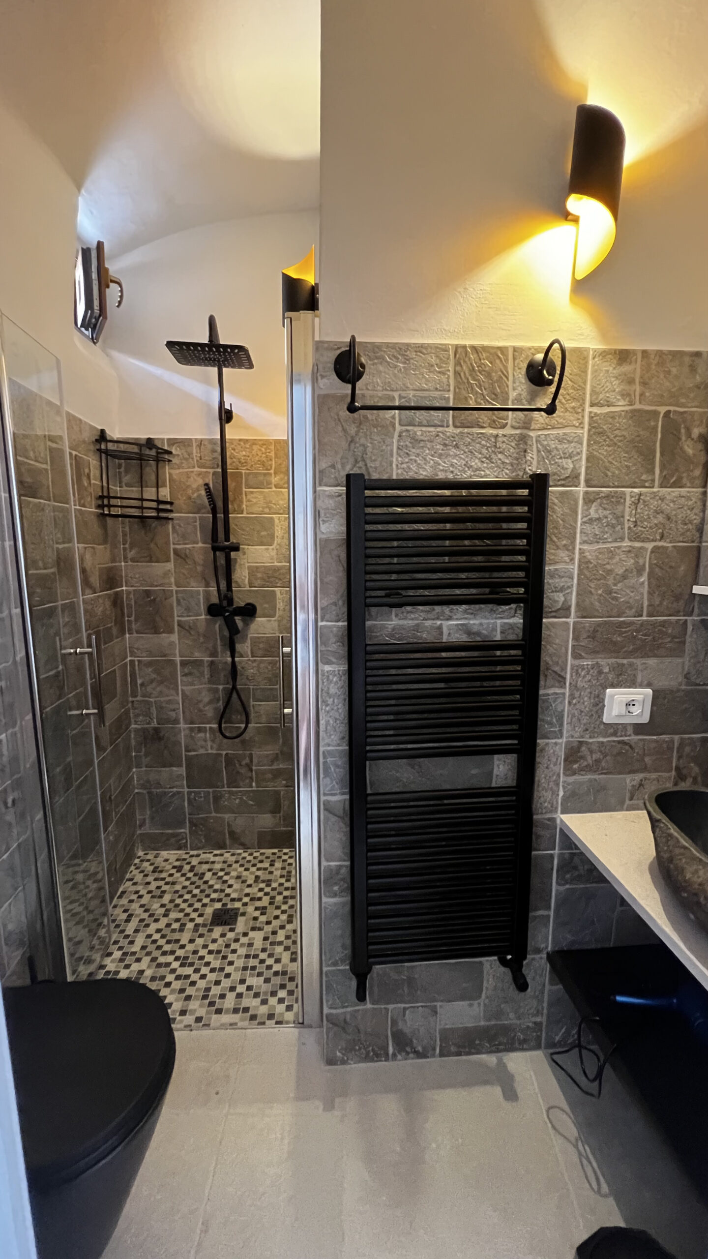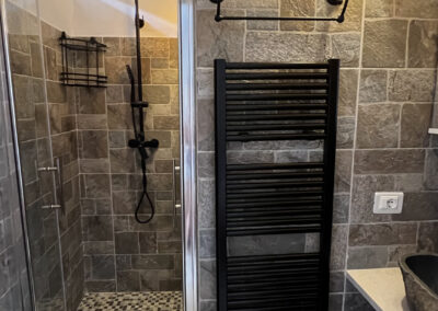 La camera Platano dispone anche di un bagno privato dotato di ogni comfort, dove potrete rilassarvi con una doccia rigenerante.